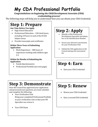 Cda Child Development Associates Professional Portfolio Workbook Teaching Resources